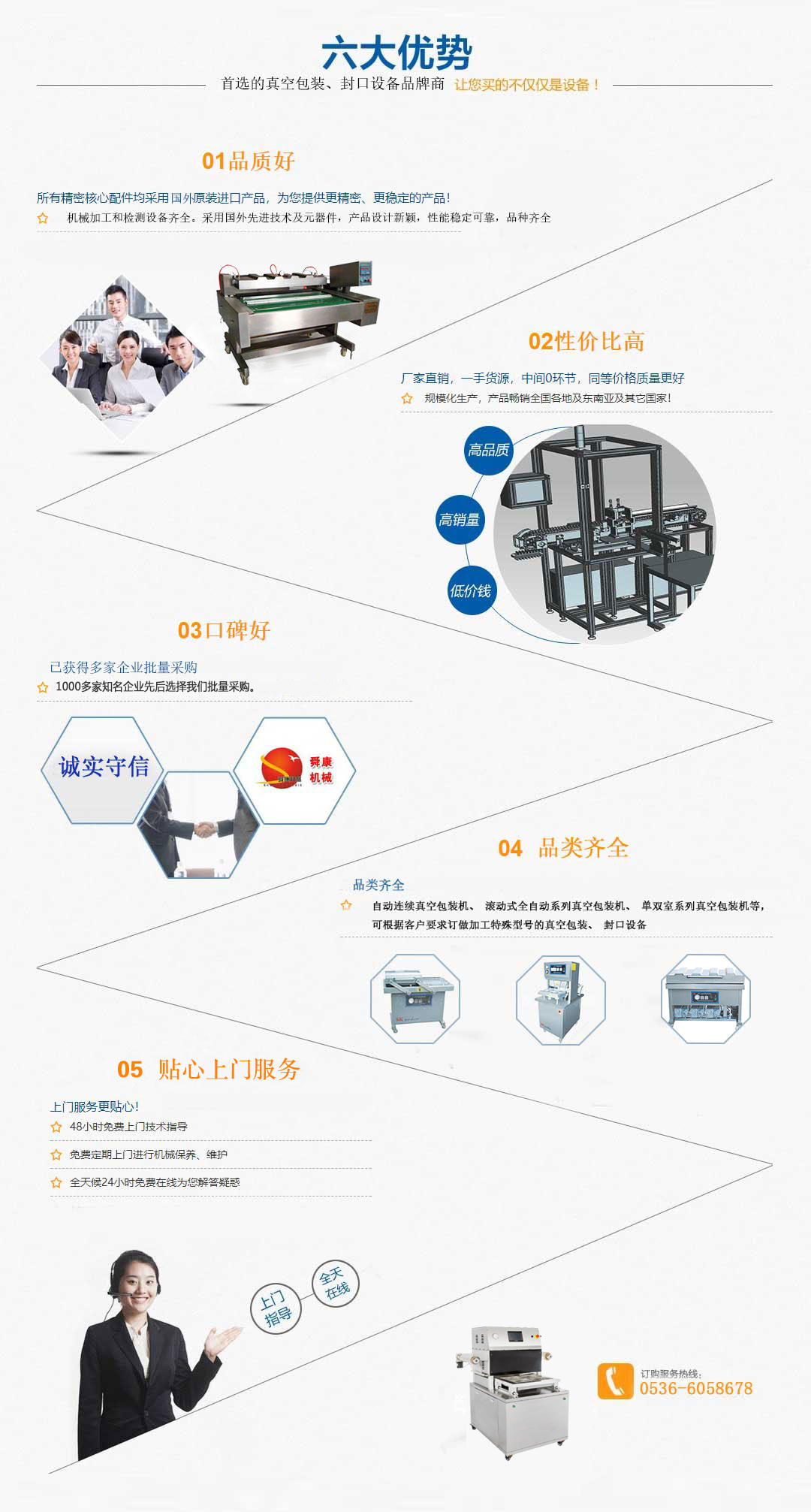 諸城市舜康包裝機(jī)械有限公司是一家集研發(fā)、制造、銷(xiāo)售、服務(wù)于一體的包裝機(jī)械生產(chǎn)企業(yè)。公司技術(shù)力量雄厚,機(jī)械加工和檢測(cè)設(shè)備齊全。采用國(guó)外先進(jìn)技術(shù)及元器件,產(chǎn)品設(shè)計(jì)新穎,性能穩(wěn)定可靠,品種齊全。 主要產(chǎn)品:自動(dòng)連續(xù)真空包裝機(jī)、滾動(dòng)式全自動(dòng)系列真空包裝機(jī)、單雙室系列真空包裝機(jī)、系列封口機(jī)、盒裝食品真空(充氣)包裝機(jī)、連續(xù)盒式封口機(jī)、肉食加工設(shè)備等,可根據(jù)客戶(hù)要求訂做加工特殊型號(hào)的真空包裝、封口設(shè)備。 舜康公司堅(jiān)持“科技為本,質(zhì)量先行,憑信譽(yù)謀發(fā)展,靠質(zhì)量求生存”的經(jīng)營(yíng)理念,為廣大客戶(hù)朋友提供優(yōu)異的產(chǎn)品與服務(wù)。 舜康熱忱歡迎廣大國(guó)內(nèi)外客戶(hù)朋友蒞臨參觀(guān)指導(dǎo)。...